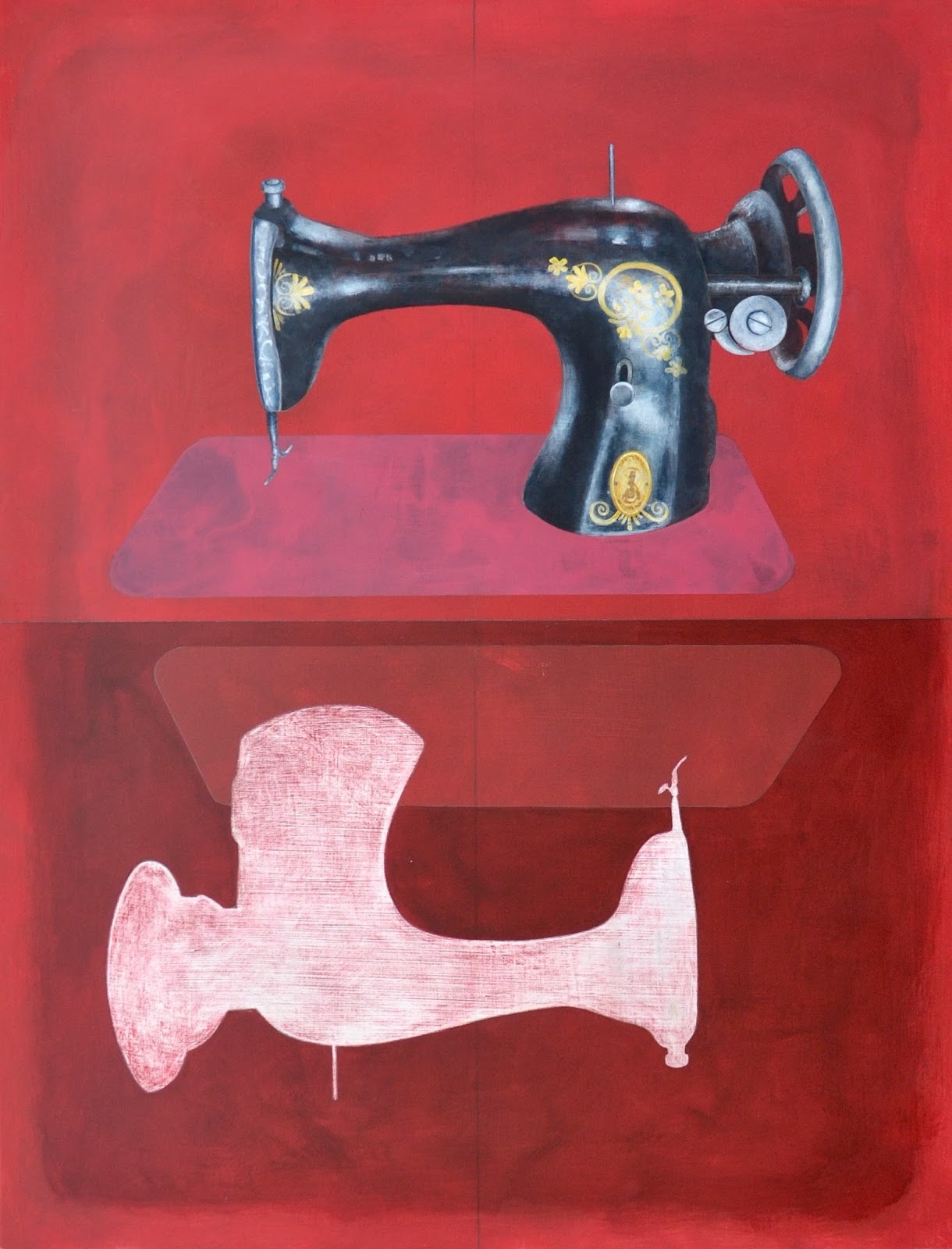 Sewing Machine, Flashe and acrylic, 26"x20", 2015 |